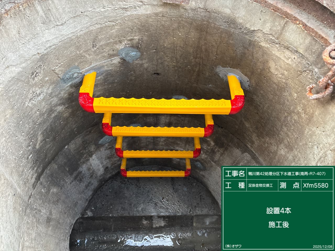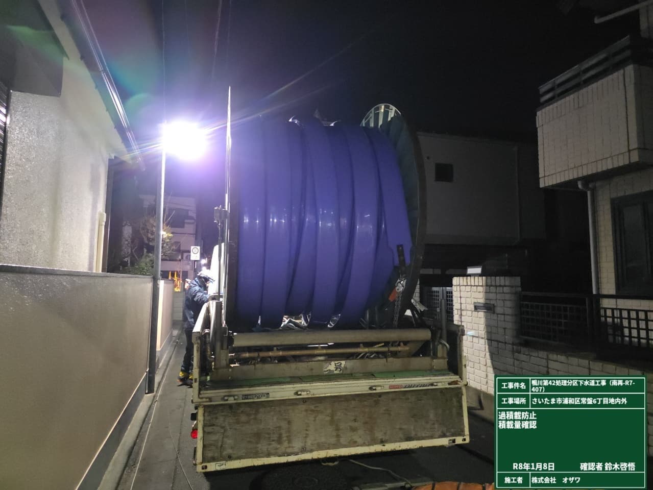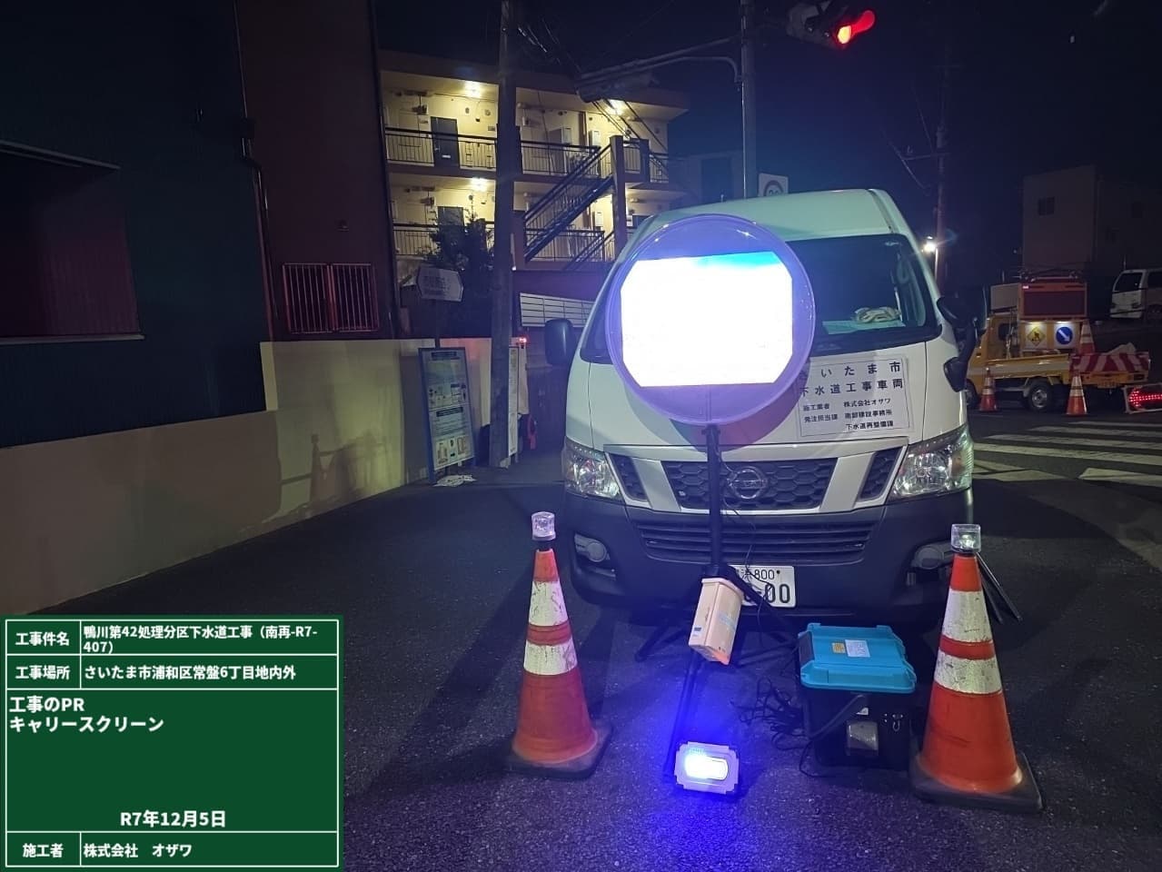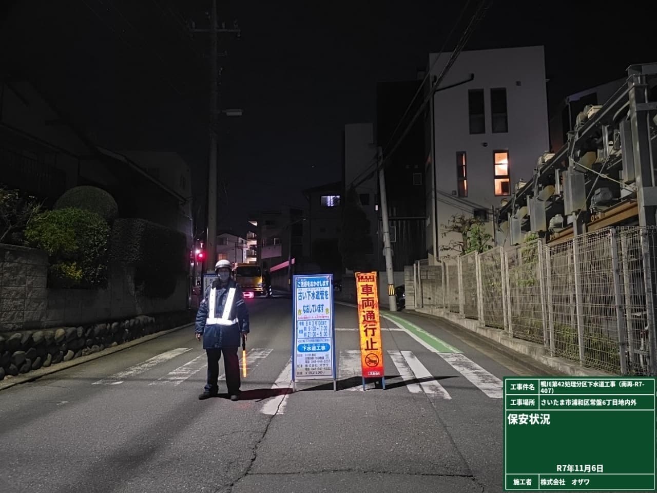 交通への影響を最小限にするため、通行規制を行い、安全対策を徹底して作業しました。また、緊急時の対応に万全を期するため、現場内にAEDを設置しました。