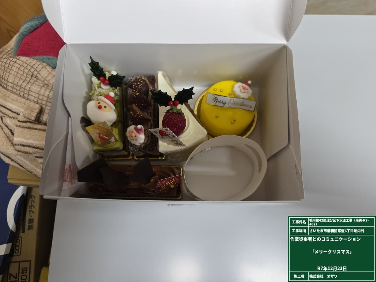 作業従事者のみんなで食べてクリスマスを祝いました(*^^*)