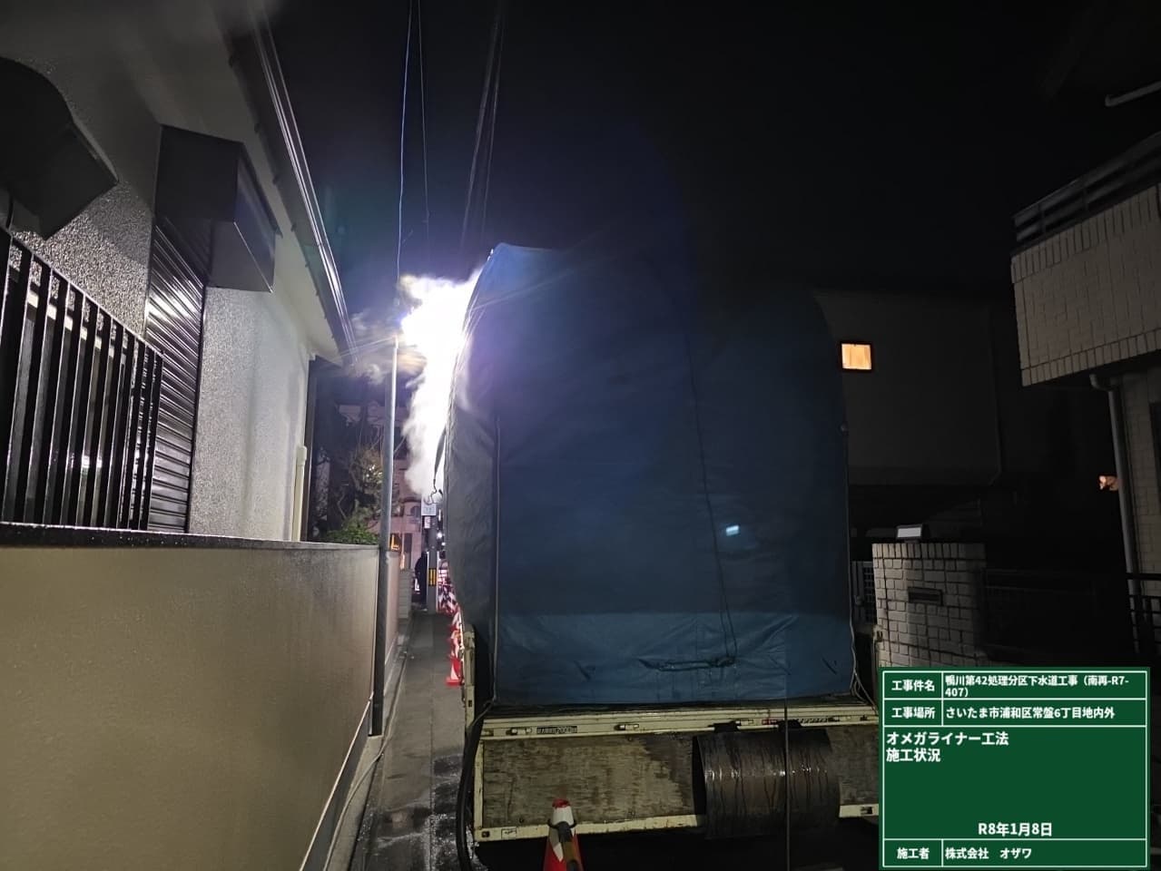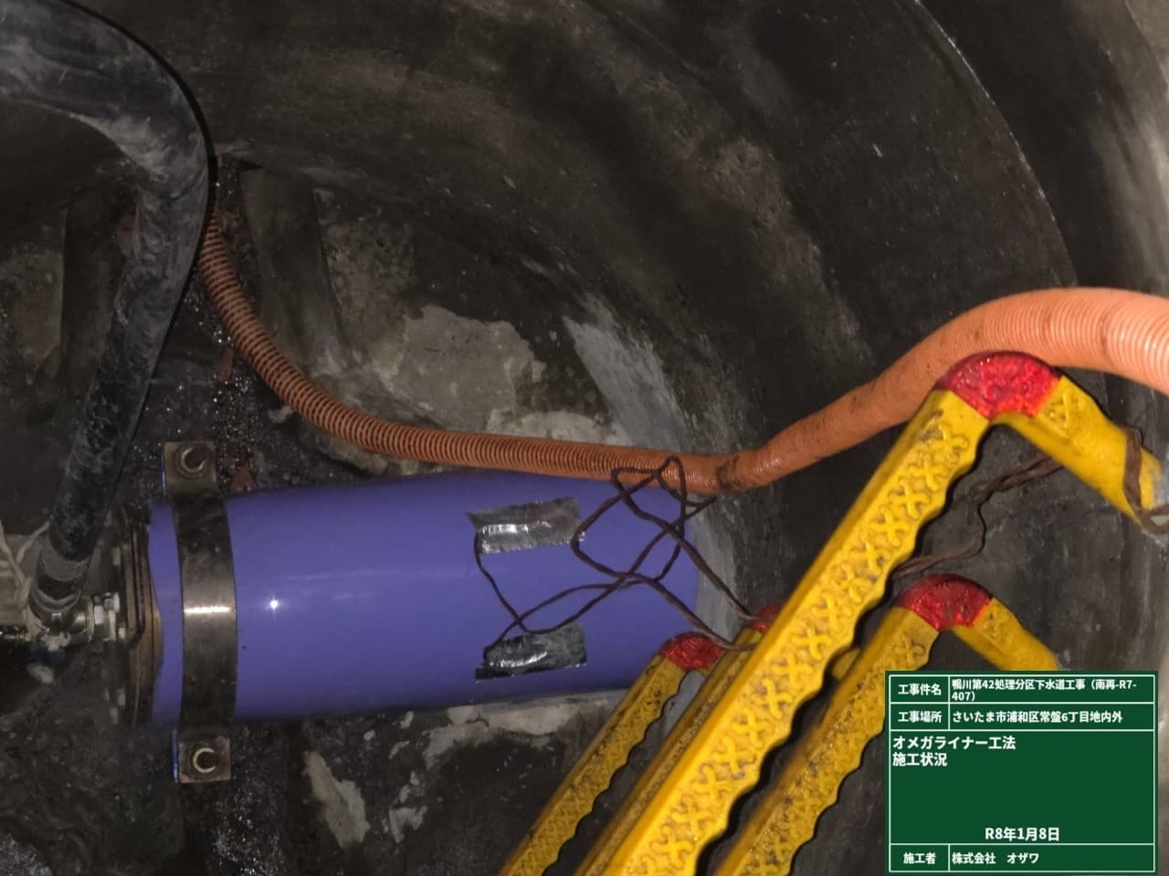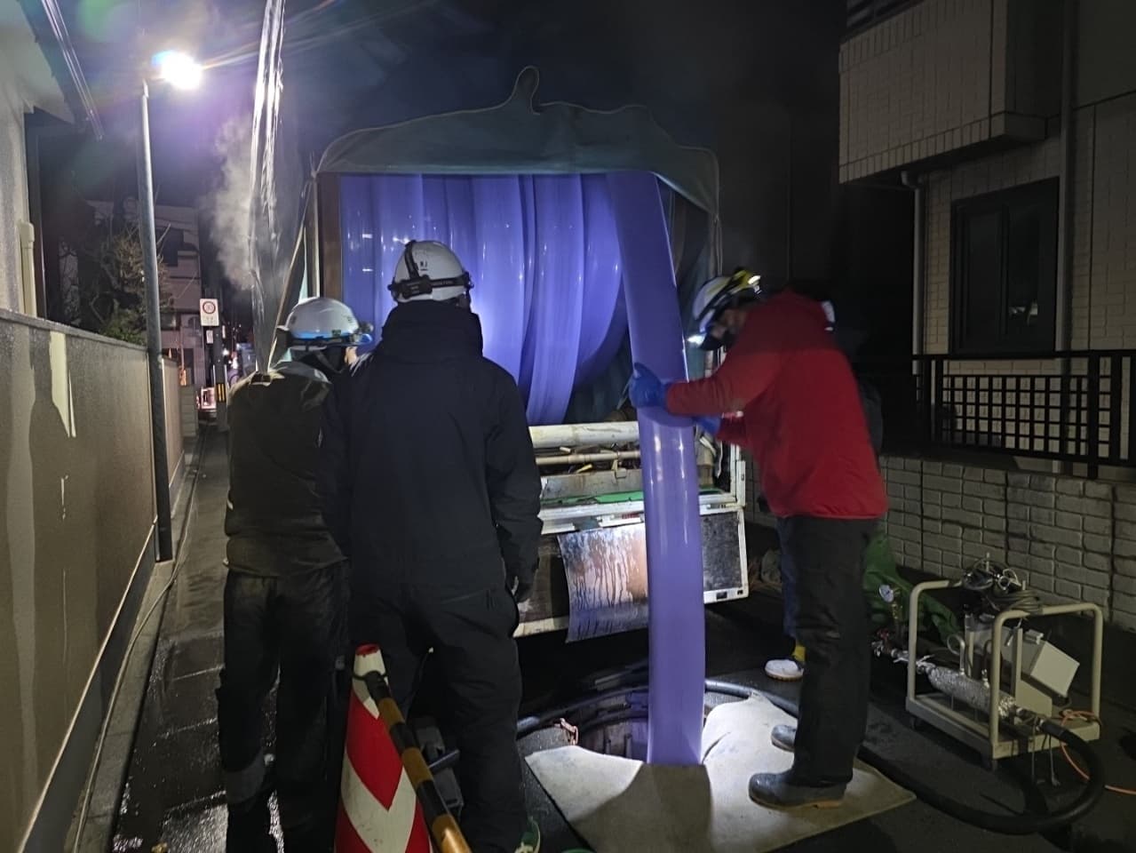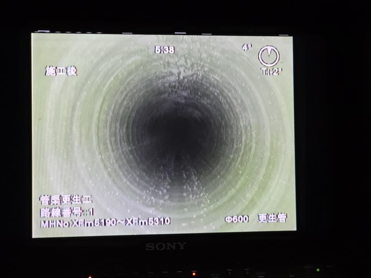 既存の下水道管を道路を掘らずに更生(あたらしくする)します。